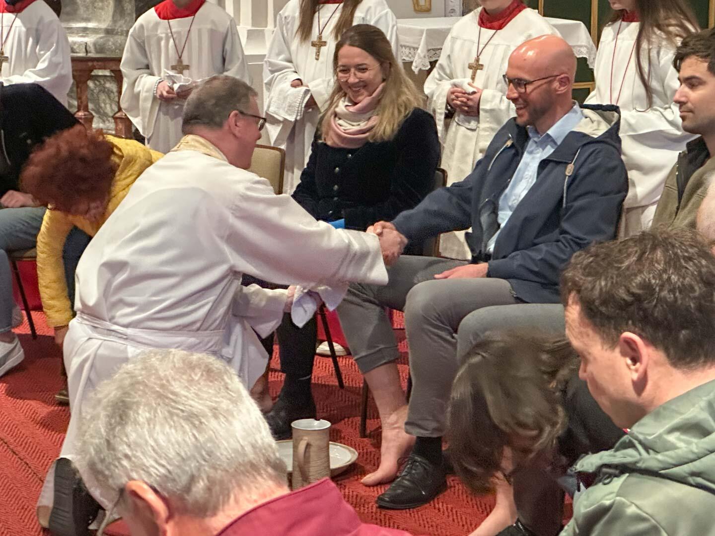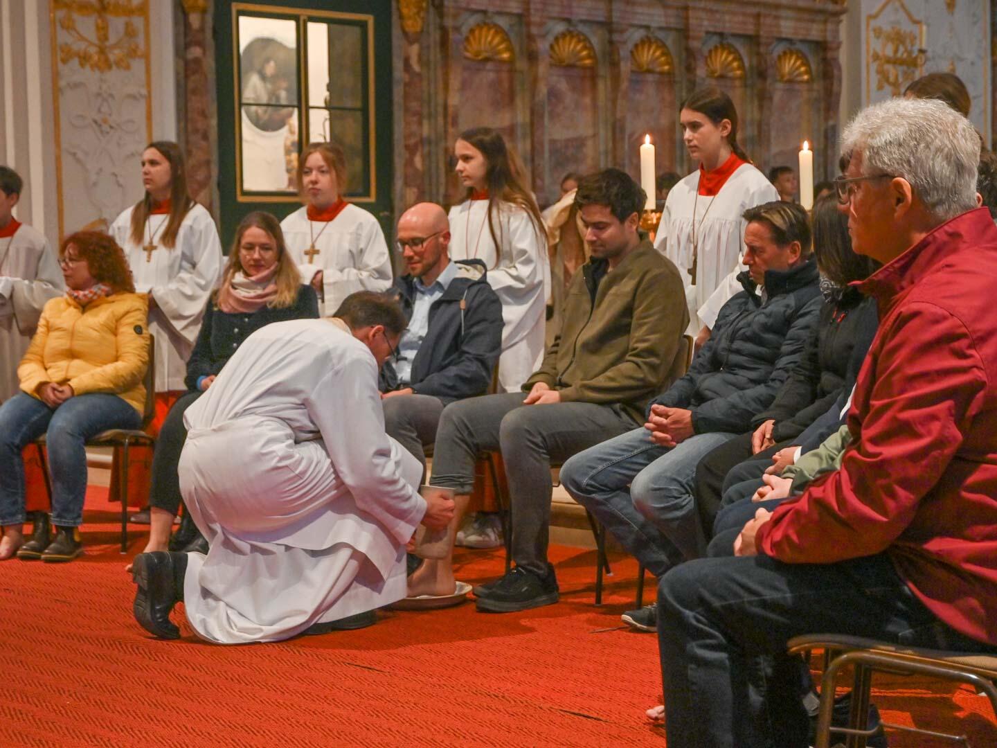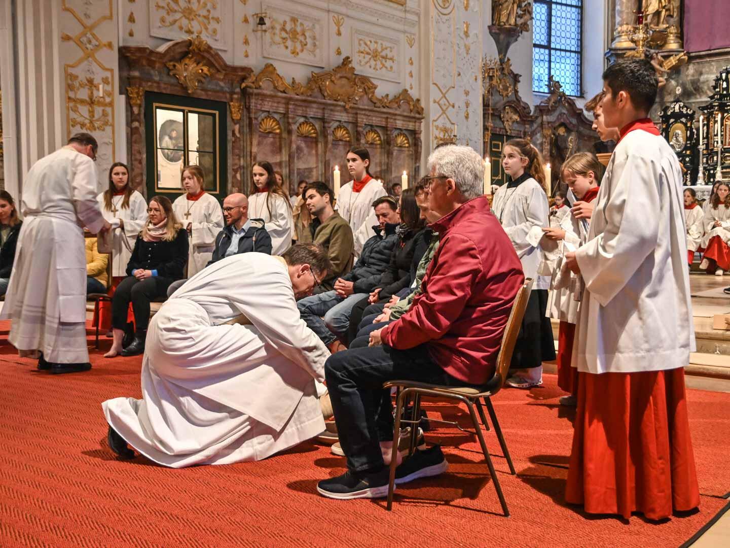 Demenz, das Vergessen der eigenen Ursprünge und des Wesentlichen, könne nicht nur für einzelne Menschen zum Problem werden, sondern auch für Gemeinschaften und ganze Staaten, stellte der Stadtpfarrer in seiner Ansprache fest. Das sei auch Jesus bewusst gewesen und er habe zwei starke Symbole gegen das Vergessen beim letzten Abendmahl eingesetzt. Zunächst wusch er den Jüngern die Füße und mahnt sie, seinem Beispiel im Dienen zu folgen. „Eine Kirche, die nicht dient, dient zu nichts“, zitierte Kohler. Es gehe nicht darum, den Menschen alles abzunehmen oder sie aus der Verantwortung zu nehmen, sondern ihnen zu helfen, wo Hilfe nötig ist. Im anschließenden Abendmahl legte er ihnen zudem ans Herz, das Brotbrechen immer wieder zu üben, um eine Gemeinschaft mit ihm und in ihm zu sein: „Tut dies zu meinem Gedächtnis!“ Wenn die Kirche diese beiden Grundsteine nicht vergesse, könne sie „ihr Gedächtnis nicht verlieren“.