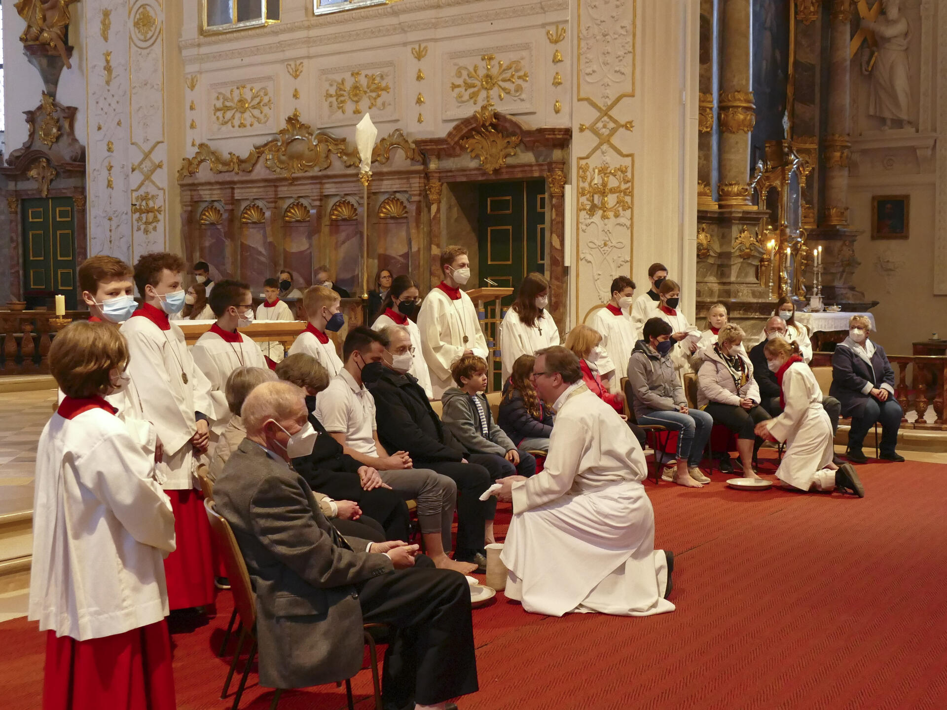 „Ich habe euch ein Beispiel gegeben, damit auch ihr so handelt“ heißt es im Evangelium. In unseren gerade auch sehr unruhigen und aufgewühlten Zeiten mache es ihm immer große Hoffnung, bekannte Pfarrer Kohler, wenn er sehe, wie sehr Menschen dem Beispiel Jesu folgen und in verschiedenster Art und Weise anderen dienen, im Großen und im Kleinen, sei es die riesige Unterstützung für die Ukraine oder der jahrelange Putzdienst in der Hofkirche. Beispielhaft stünden dafür auch die 12 „Apostel“, die dieses Jahr für die Fußwaschung ausgewählt wurden und die alle einen Dienst in der Pfarrei verrichteten.