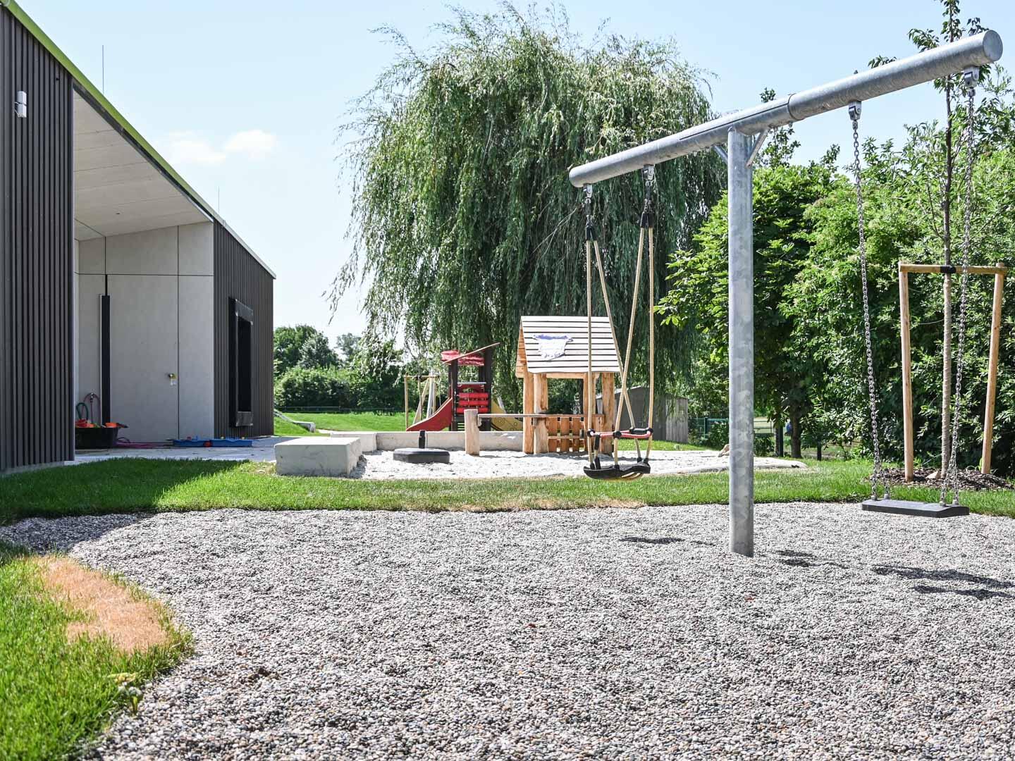 Er wurde nach Ostern angelegt. Es ist ein großzügiges Areal. Mit wehenden Ästen betrachten ein paar alte Weiden die Rutschen, Schaukeln und Klettergerüste. Die neue gepflanzten Bäume und Sträucher müssen noch wachsen bevor sie mit den Weiden auf Augenhöhe sind.