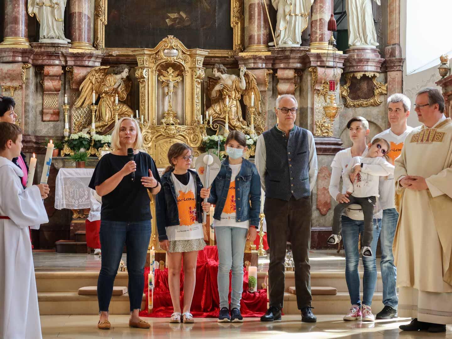 (Christine Jann) In den Familiengottesdienst am Sonntag, 22. Mai in der Hl. Geist-Kirche waren nochmal ausdrücklich die Erstkommunionkinder eingeladen - mit ihren Geschenken, die gesegnet werden sollten.