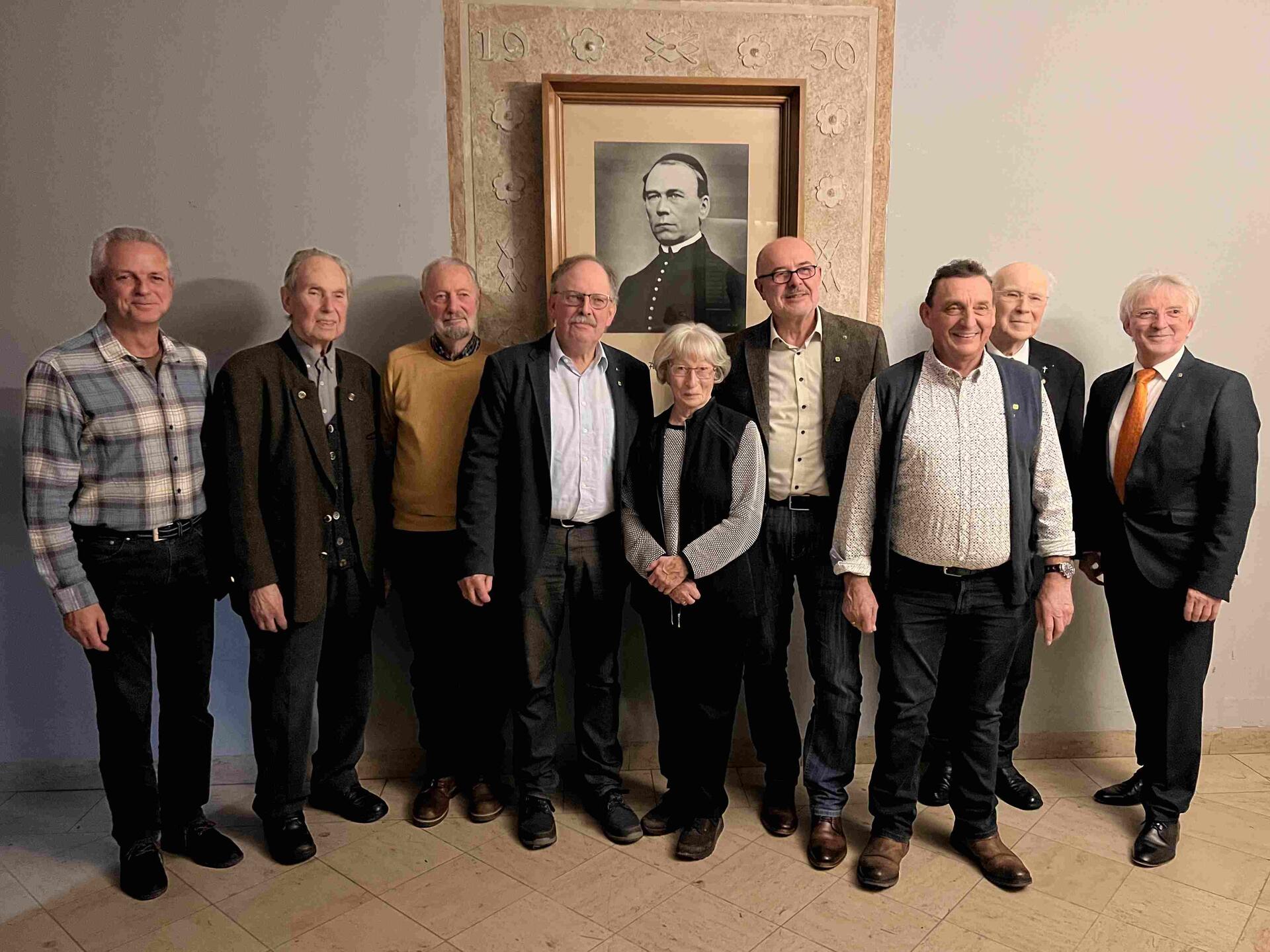 Nach dem Gottesdienst trafen sich die Kolpinger in ihrem Vereinszimmer zu einer gemütlichen, von fleißigen Händen vorbereiteten Brotzeit. Ein Höhepunkt waren dann aber die Ehrungen für neun langjährige Mitglieder durch den 1. Vorsitzenden Michael Smoll. Zwei davon waren entschuldigt. Die Geehrten nahmen stolz die Urkunden des Int. Kolping-Werkes und eine goldene Nadel entgegen. Smoll wies dann noch in diesem festlichen Akt auf das 170-jährige Bestehen des Neuburger Gesellenvereins hin und schilderte in einem interessanten Kurz-Referat die Geschichte des Vereins und des Kolpinghauses.