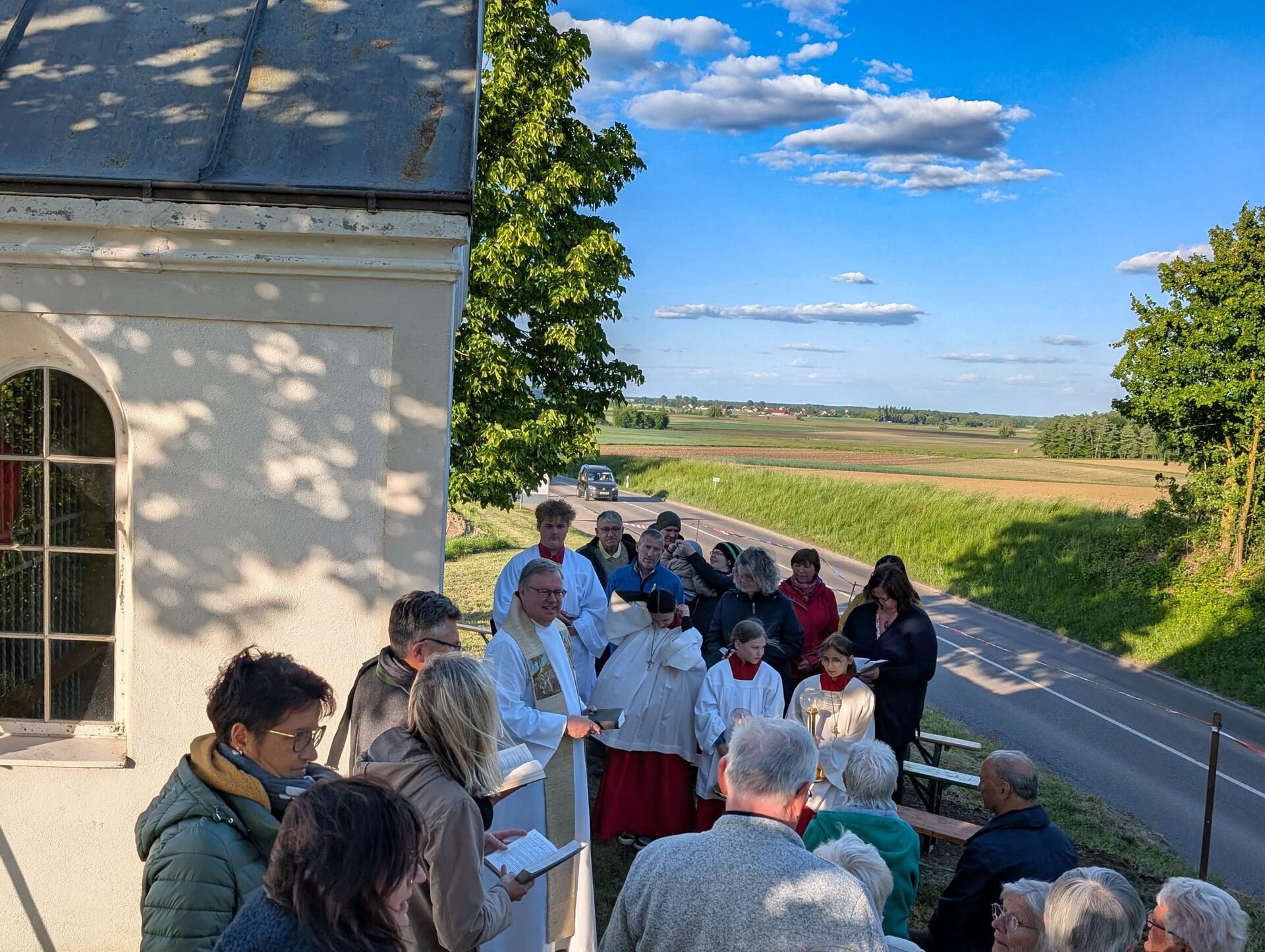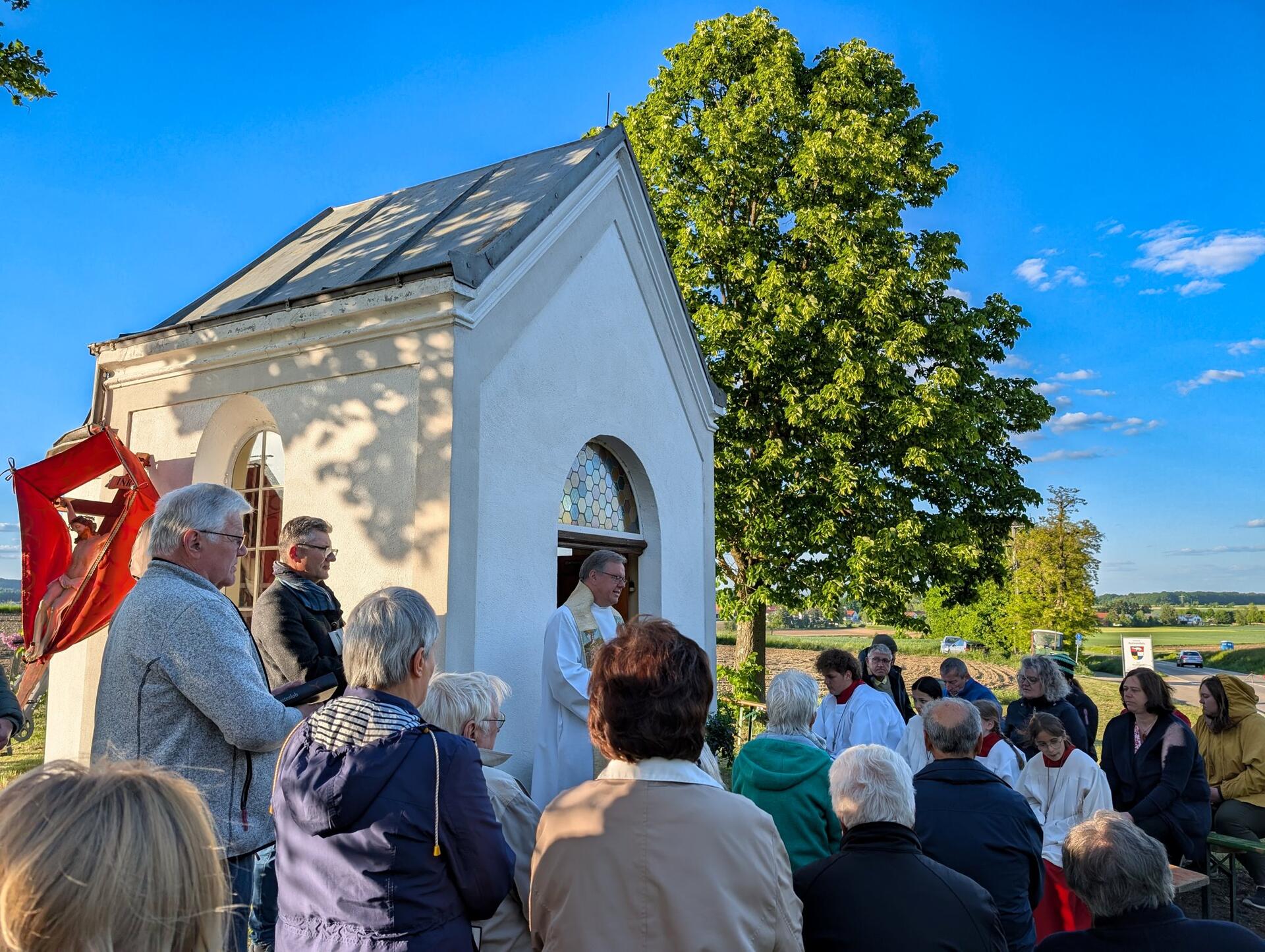 Seit die Familie Weigl vor einigen Jahren die kleine Kapelle am Ortseingang von Rohrenfels saniert hat, findet dort jedes Jahr eine Maiandacht statt.