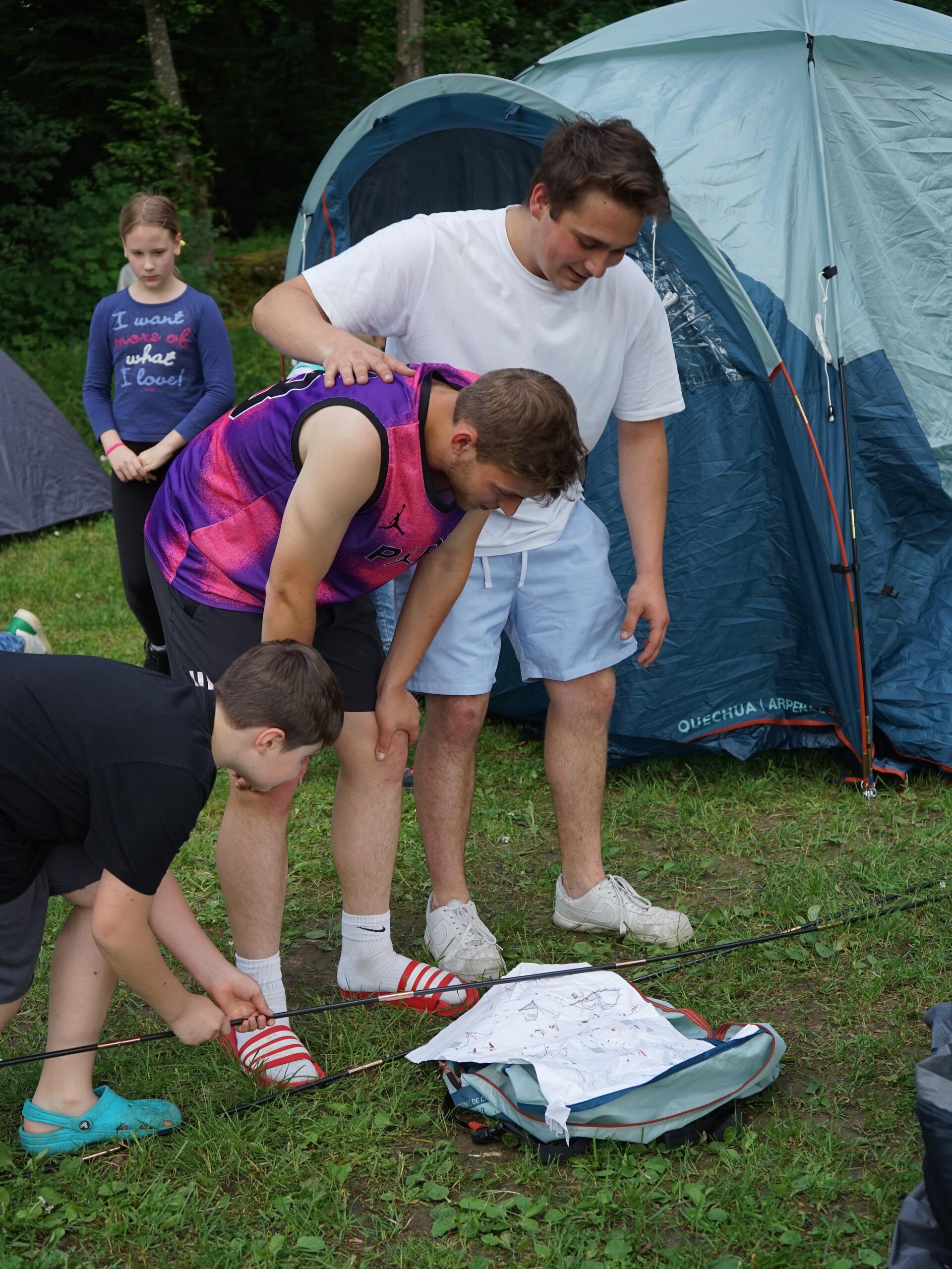 Zunächst wurde mit dem Aufbau der Zelte gestartet, bevor die Lagerregeln erklärt wurden und wir uns in einigen Spielen näher kennengelernt haben. Im Verlauf des Abends folgten die Gruppeneinteilung in Bären, Löwen, Krokodile und Wölfe, sowie eine Olympiade.
