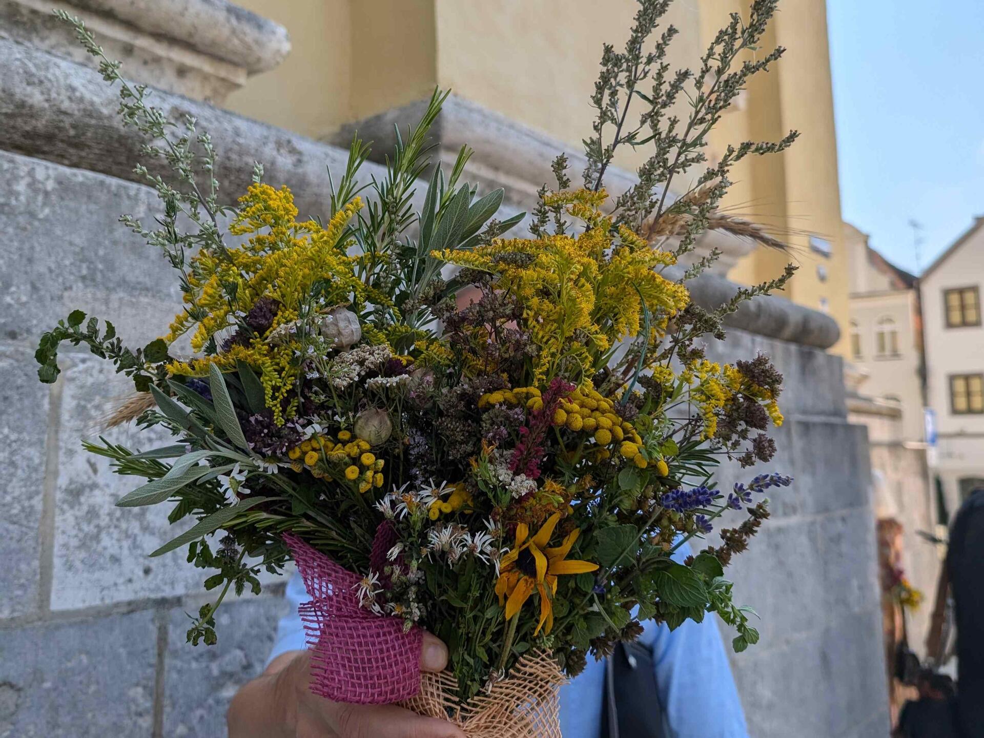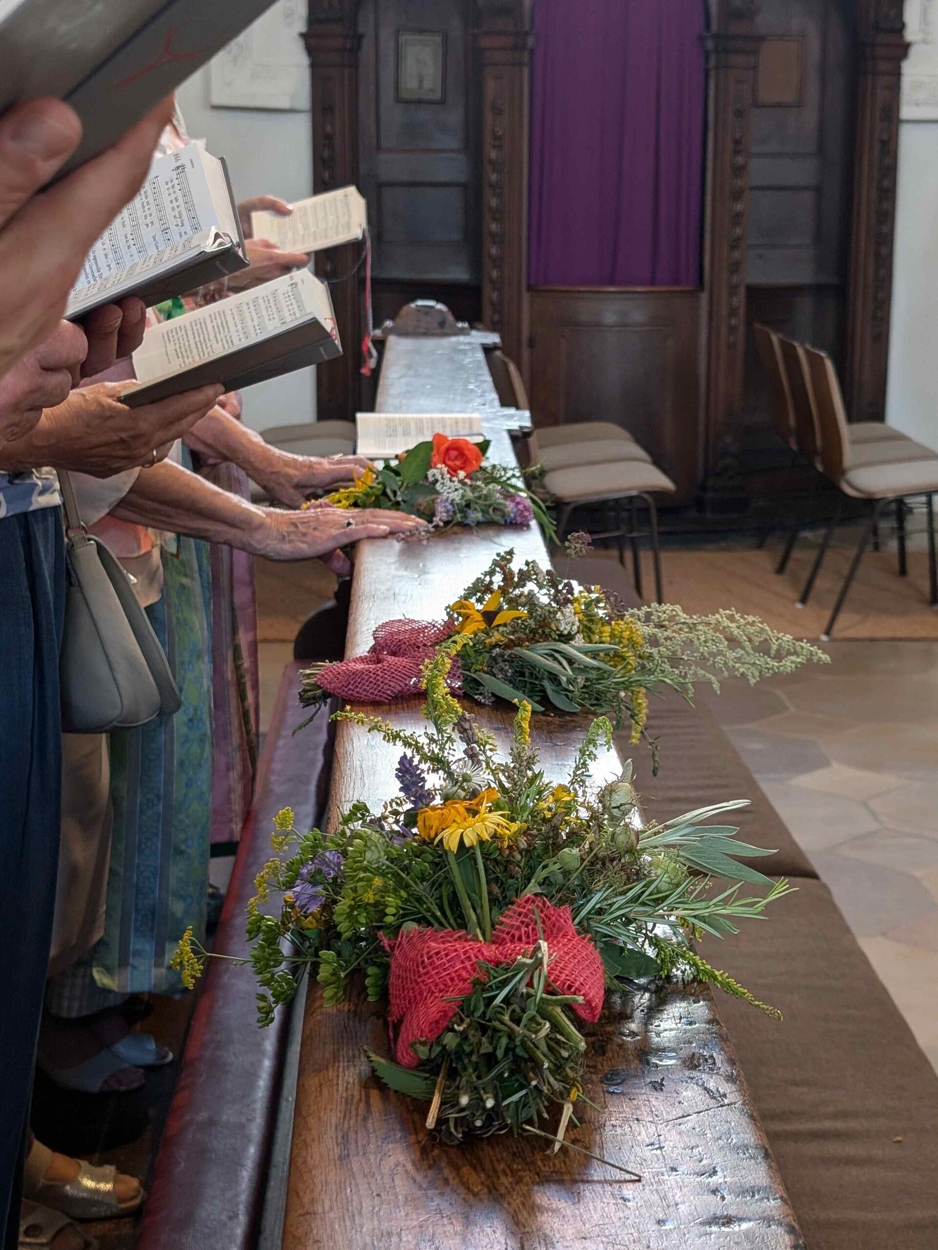 Im Anschluss segnete er die Kräuterbuschen, die traditionell zu Mariä Himmelfahrt gehören. Sie seien ein Zeichen für unsere Leiblichkeit, die darin enthaltenen Heilkräuter erinnerten uns daran, auf unseren Körper zu achten, erläuterte er den Zusammenhang zum Fest.