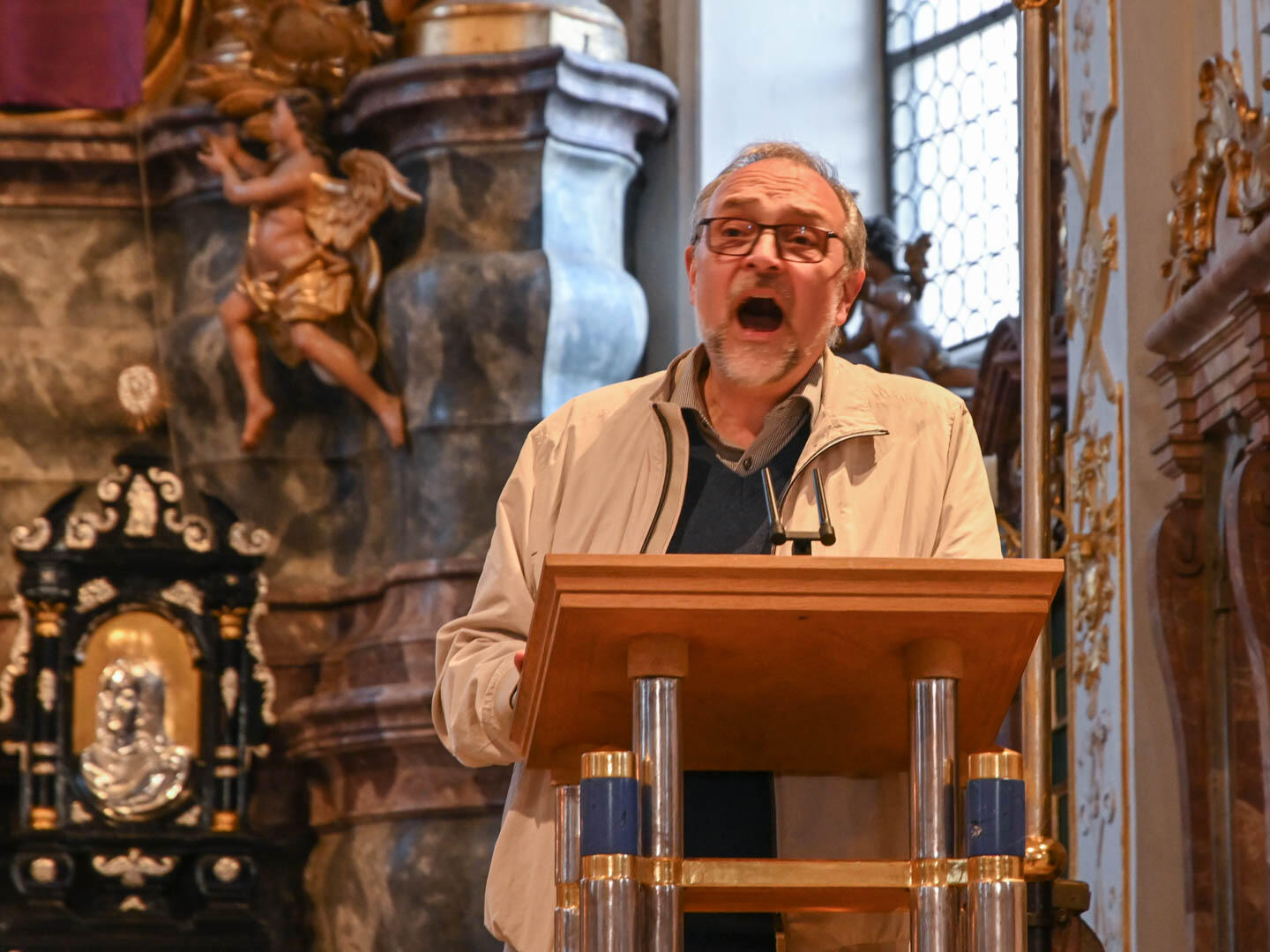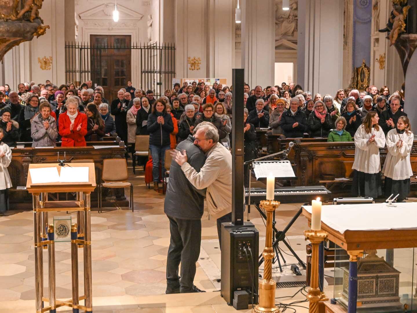 Als krönenden Abschluss lud Norbert Becker ein, den franziskanischen Gruß „PACE E BENE“ als Kanon zu singen. Auch wenn es viele nicht kannte, alle sangen mit. Ein wunderbarer Klang erfüllte plötzlich die gesamte Hofkirche – in den dann auch noch Stadtpfarrer Herbert Kohler den Schlusssegen sprach.