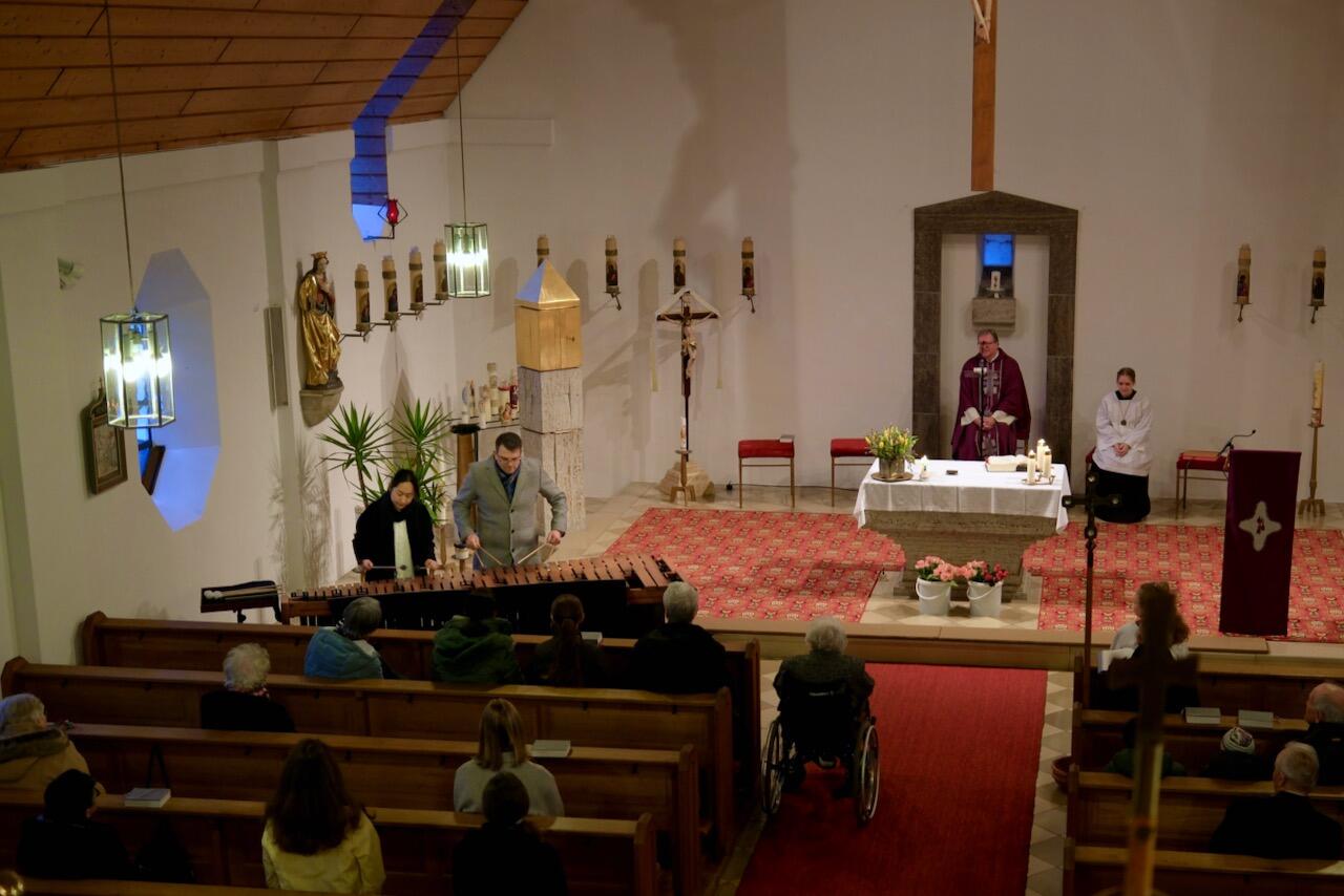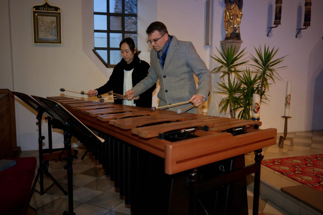 Mit Ihrer Marimba eröffneten Sie den Gottesdienst mit dem Walzer von Richard Strauß "An der schönen blauen Donau" und regten die ersten Gottesdienstbesucher zum Mitschunkeln an. Vor der Predigt von Stadtpfarrer Herbert Kohler spielten sie noch "Ungarischer Tanz" von Johannes Brahms.