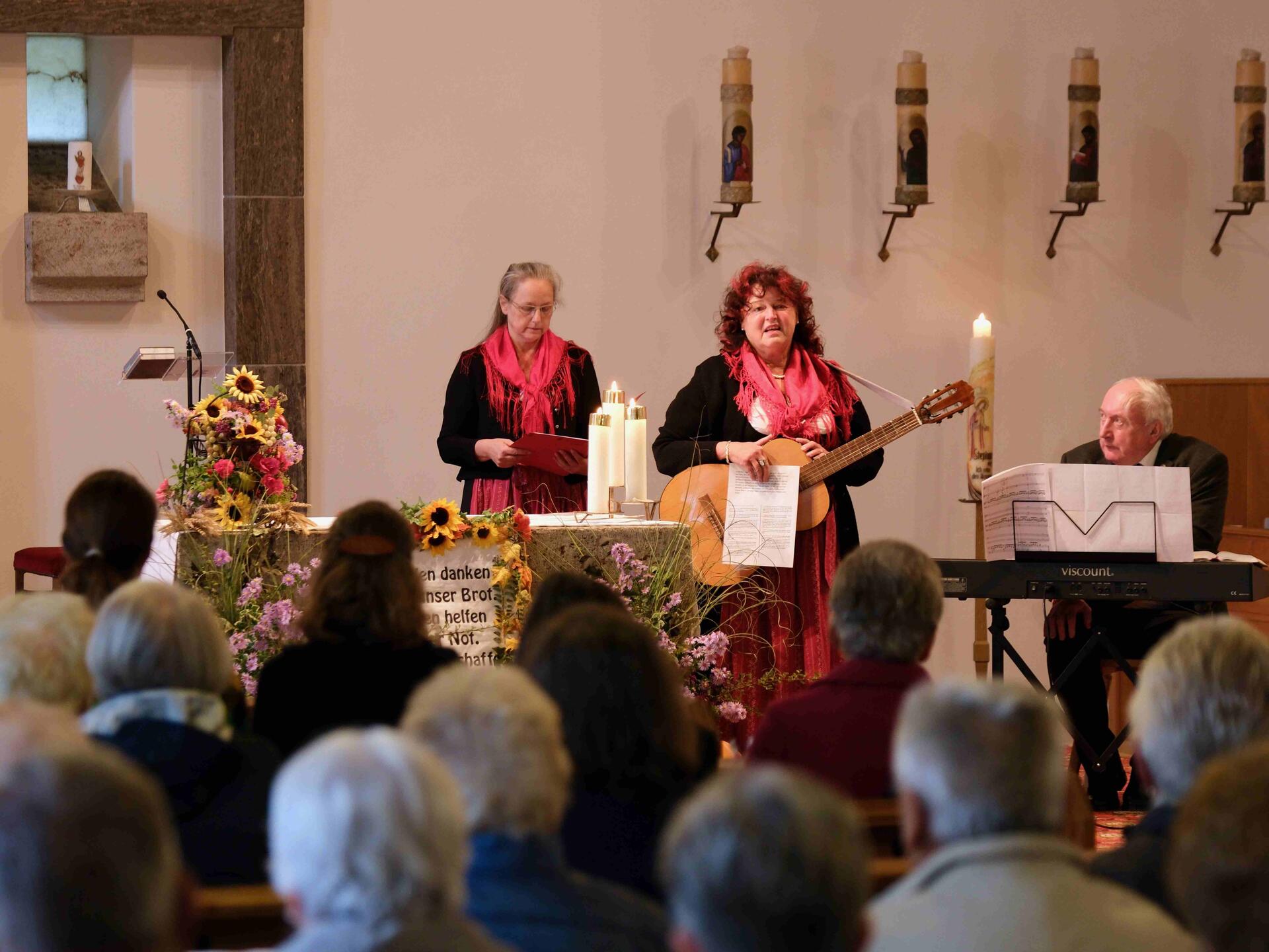 (Josef Alt) Am 8. Oktober gestaltete Erna Dirschinger eine musikalische Rosenkranzandacht in der Kirche St. Stephanus in Sehensand. Begleitet wurde sie von Ida Rau (Alt) und Max Höringer am Keyboard. Zu Anfang wurde gemeinsam “Gegrüßest seist Du Königin“ gesungen, weil an diesem Tag das Fest der Rosenkranzkönigin war. Während der Andacht wurden altüberlieferte Mariengebete gebetet, die in unserer Zeit nur noch selten zum verwendet werden, unter anderem „Jungfrau, Mutter Gottes mein“ und „Unter deinen Schutz und Schirm“.