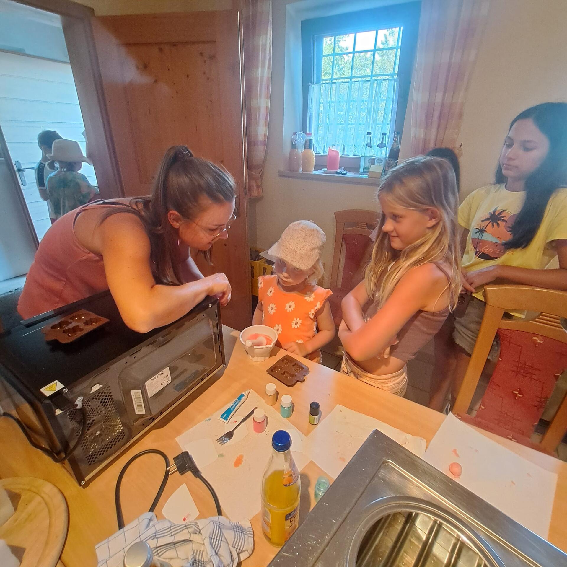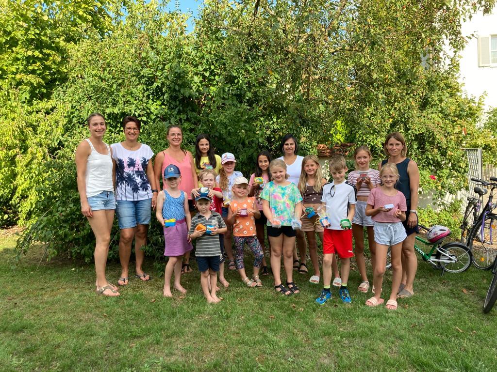 (Sonja Braun) In ausnahmslos strahlende Gesichter durfte der Pfarrgemeinderat Rohrenfels am Ende des Ferienprogramms blicken. Alle Kinder kreierten ihre ganz persönliche Seife. Sie durften sich den Duft, die Farbe mit oder ohne Glitzer sowie die Form aussuchen und die Seife selbst gießen. Jeder konnte mindestens eine große oder zwei kleine Seifen herstellen. Damit die Seifen sicher nach Hause gebracht werden konnten, wurden außerdem auch Schachteln aus Papier gebastelt. Das Eis als Abschluss war an diesem heißen Sommertag eine willkommene Abkühlung.