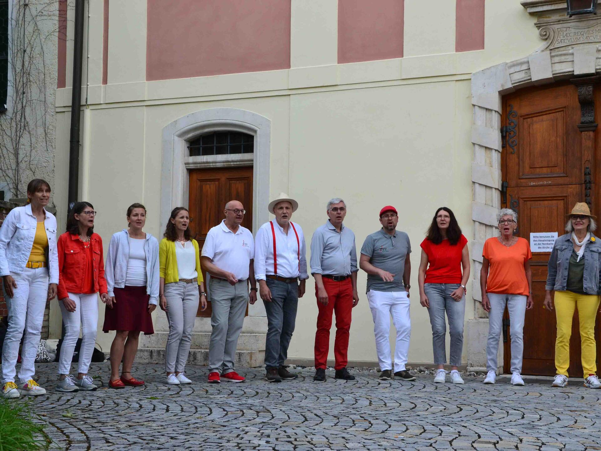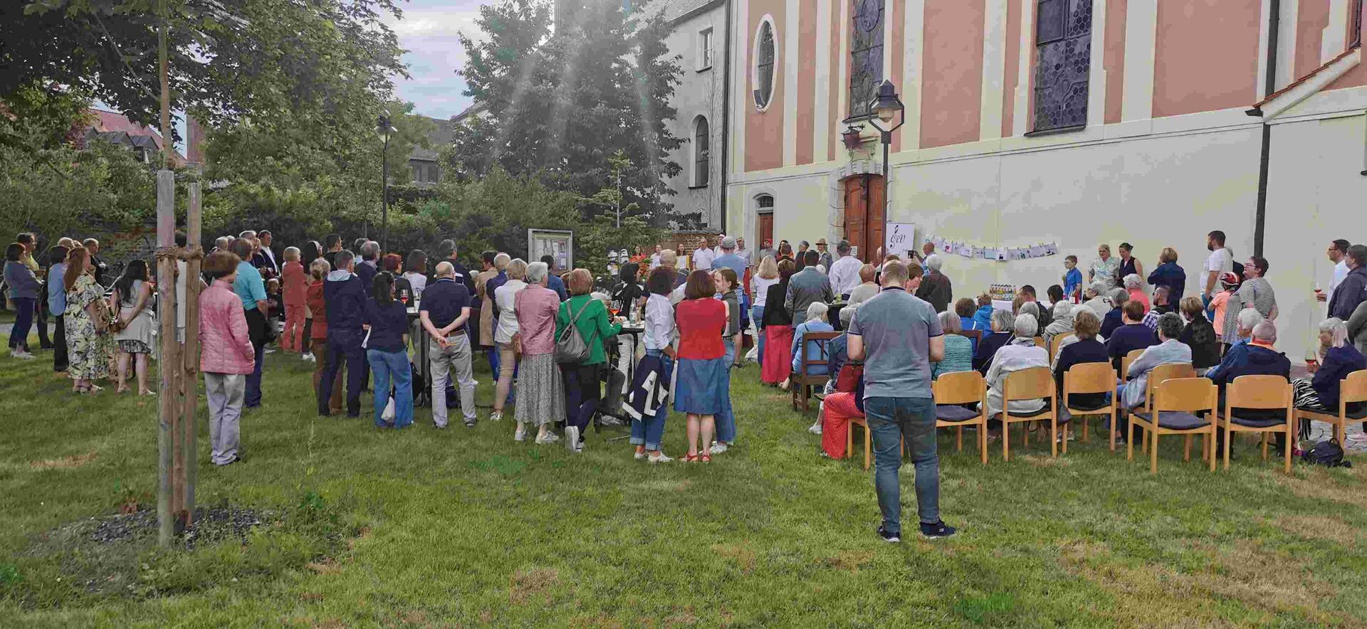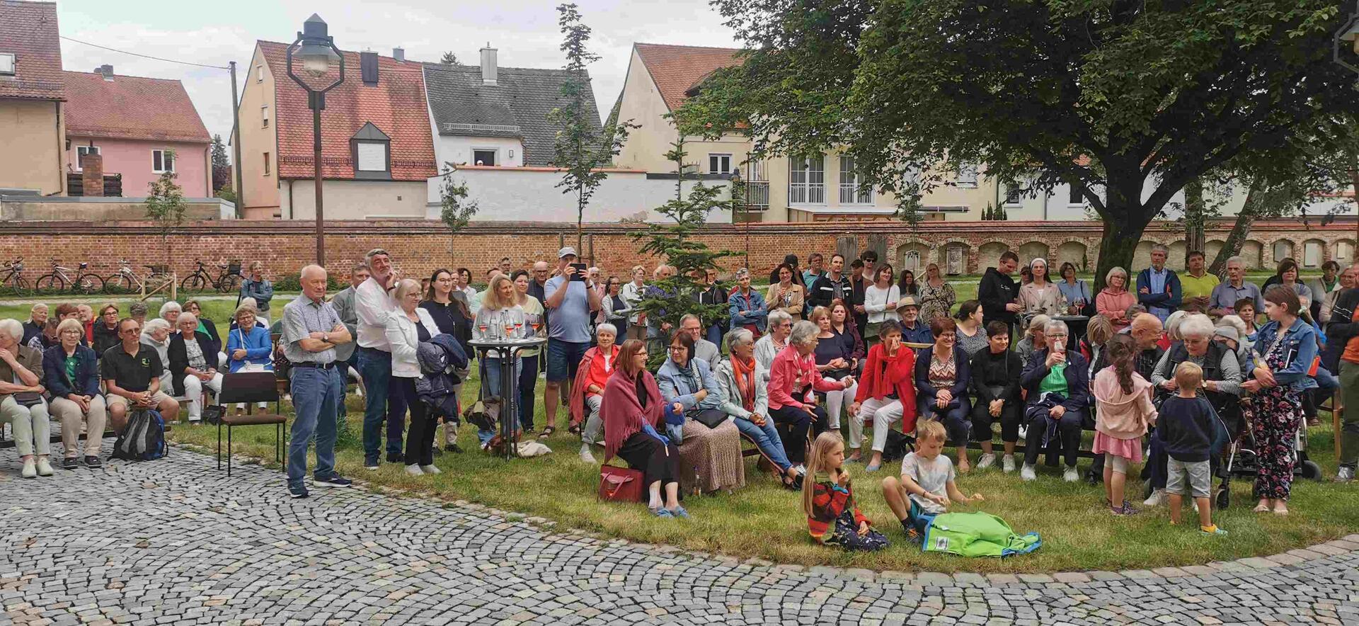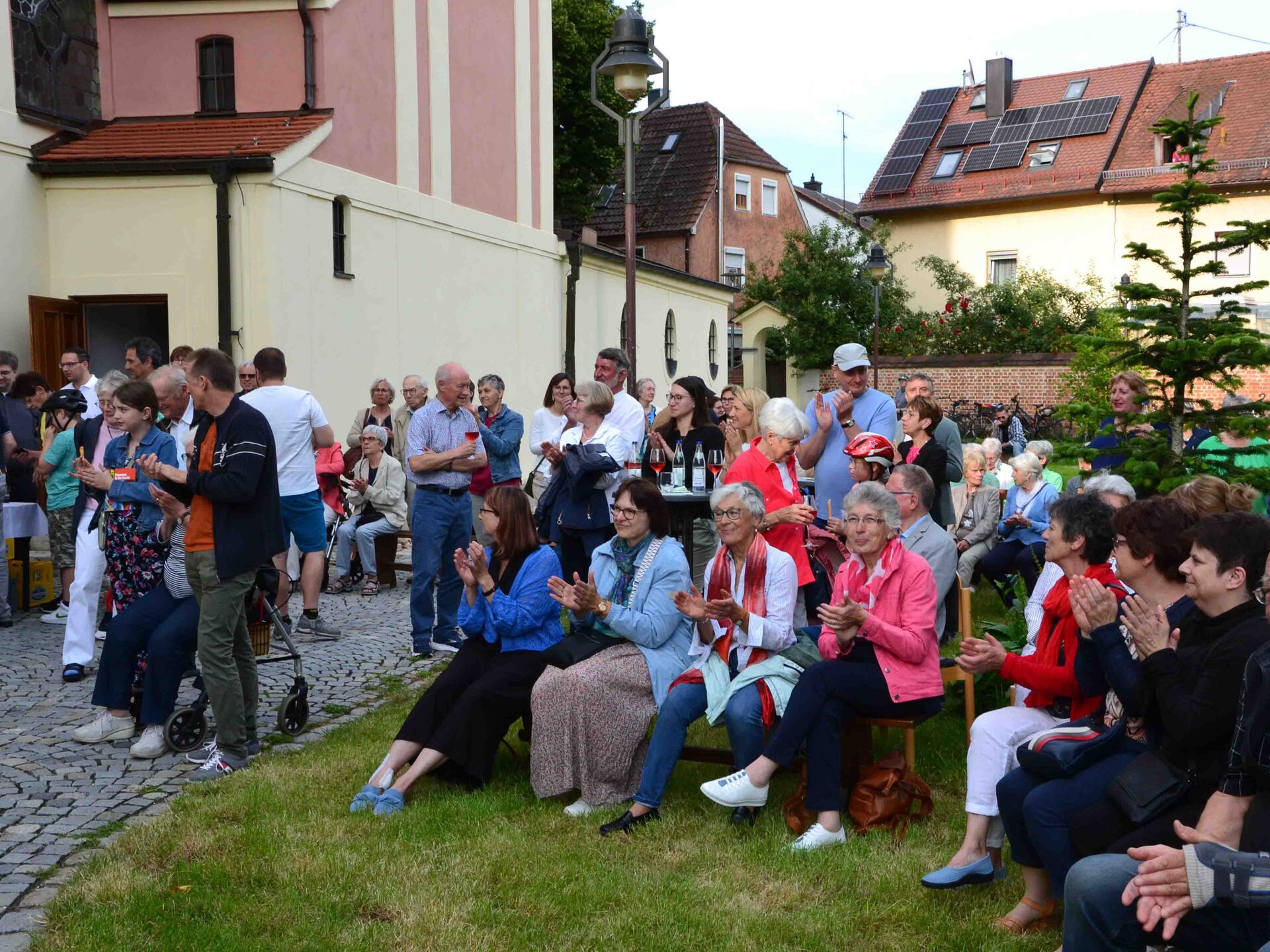 Auch wenn akkustisch nicht jeder Standort optimal war, die aufmerksamen Zuhörer genossen diesen Abend sichtlich, wobei auch der Wettergott und ein Gläschen Rose ihren Anteil hatten.