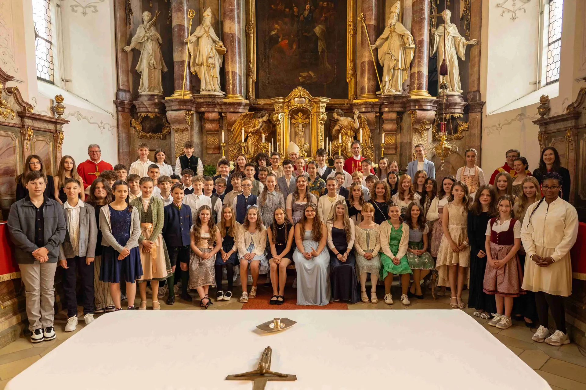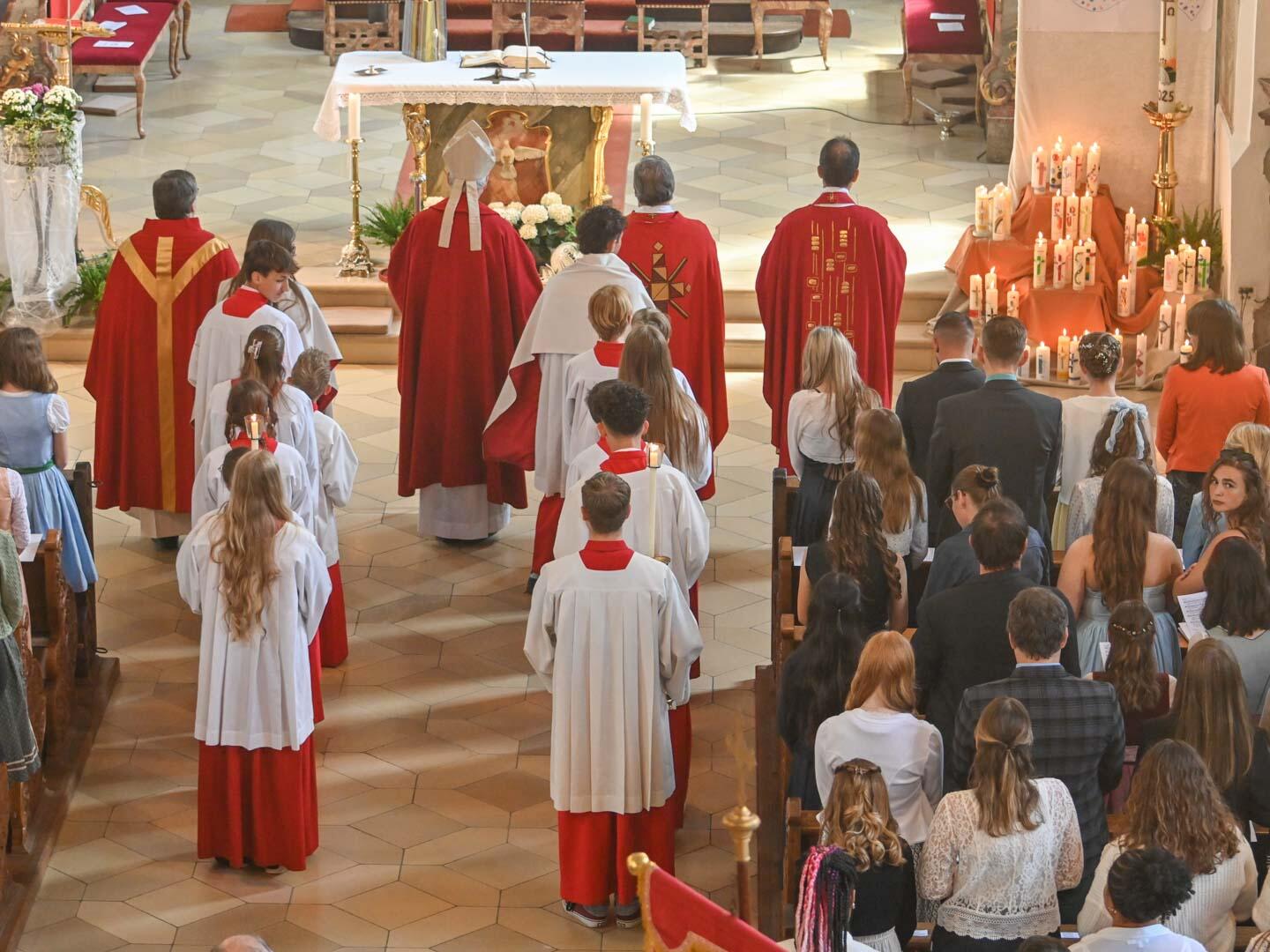 Am 30. Mai 2025 war es dann soweit. 70 Jugendliche unserer Pfarreiengemeinschaft empfingen durch Abt em. Emmeram Kränkl das Sakrament der Firmung. Im feierlichen Gottesdienst in der Hl. Geist Kirche traten die Jugendlichen mit ihrem Firmpaten vor den Altar und wurden mit Chrisam gesalbt. „Sei besiegelt durch die Gabe Gottes, den Heiligen Geist!“ – der Heilige Geist wurde Ihnen als Unterstützung und Kraft zugesprochen.