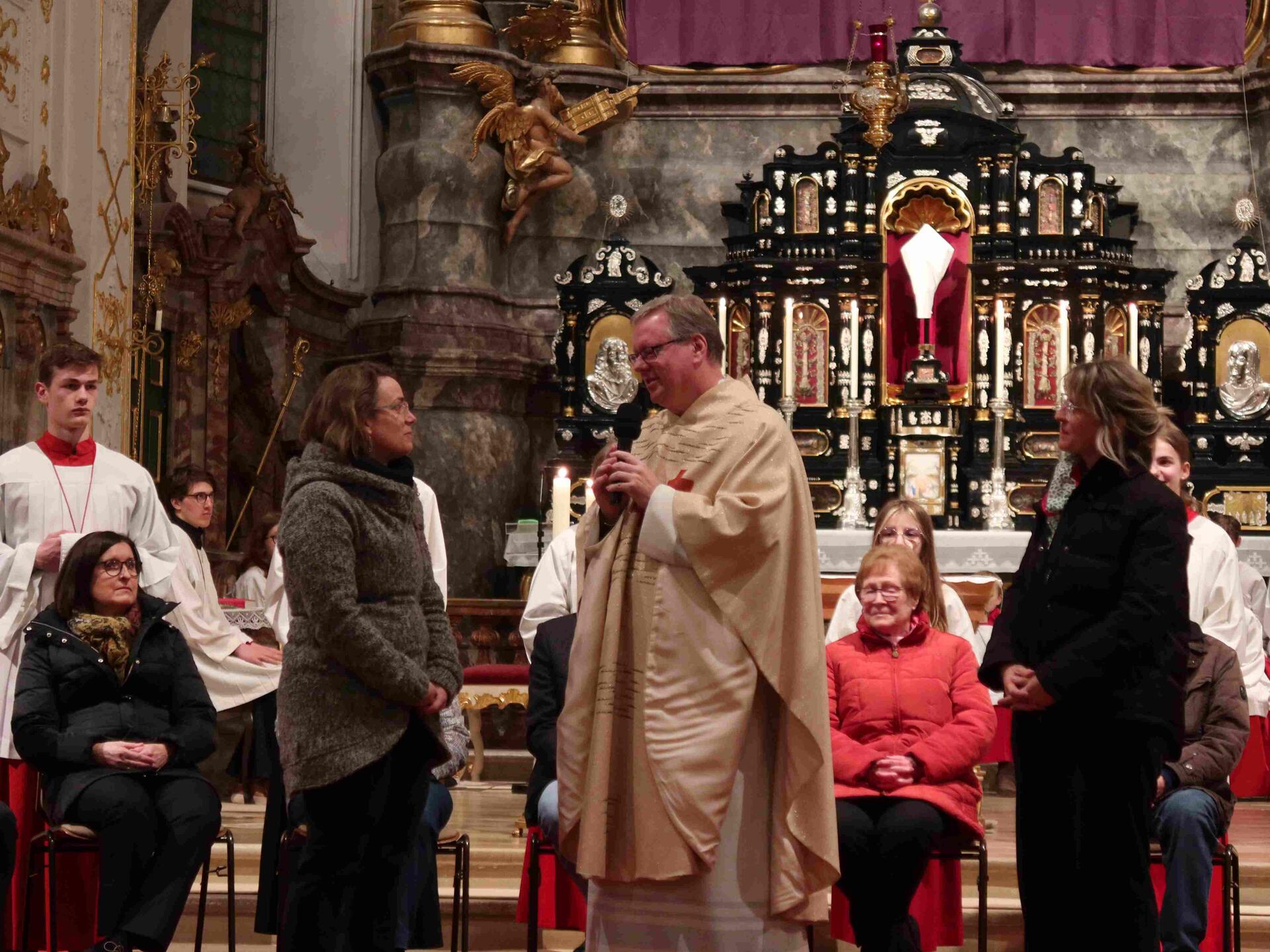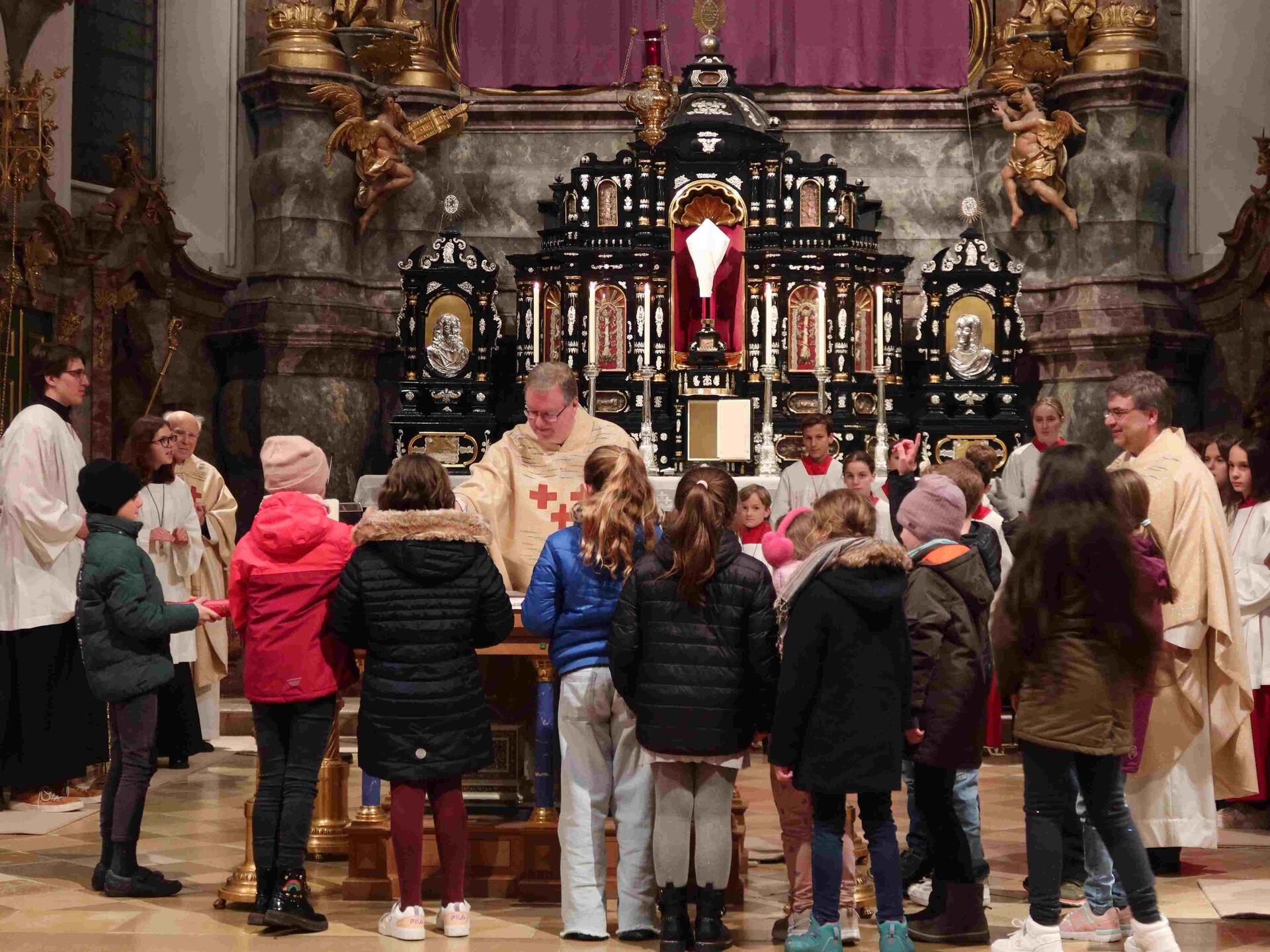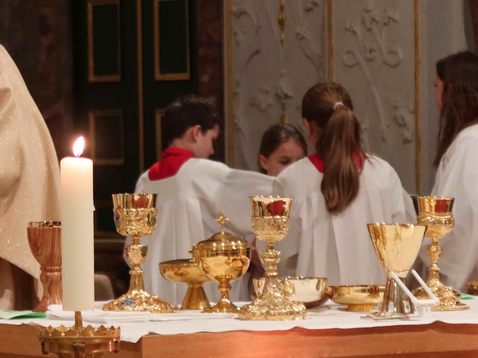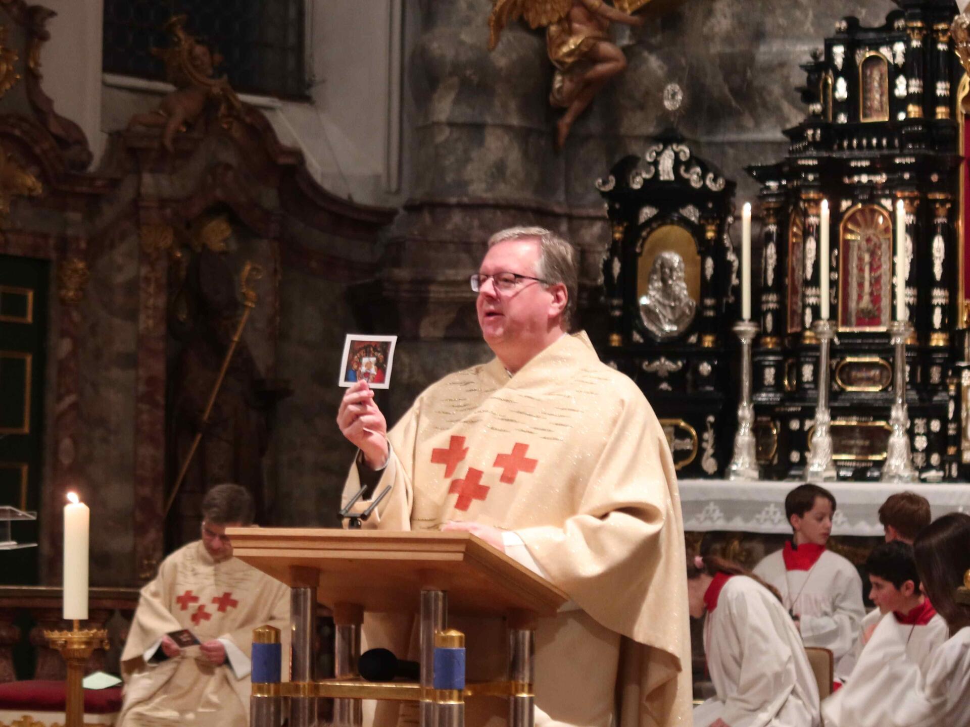 Am Karsamstag, dem Tag der Ruhe und Vorbereitung, feierte Pfarrer Leutgäb in der Hofkirche eine Trauermette, die von eine Schola aus dem Kirchenchor musikalisch gestaltet wurde, bevor am Abend die ersten Osternachtsfeiern begannen.