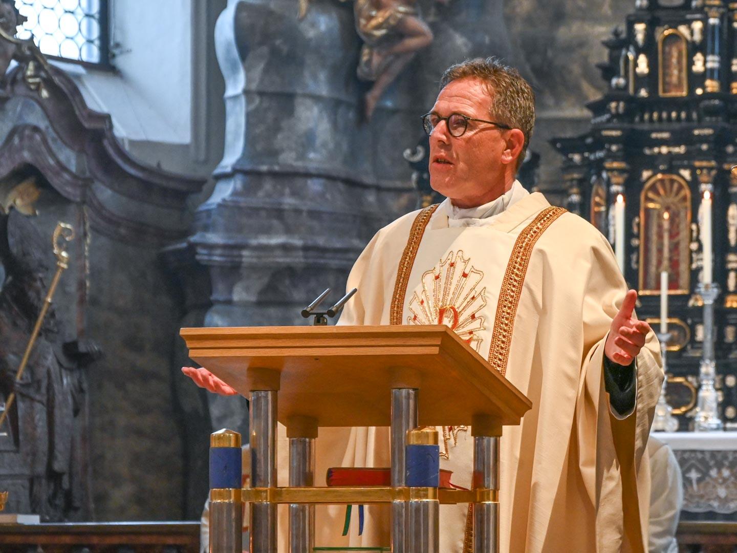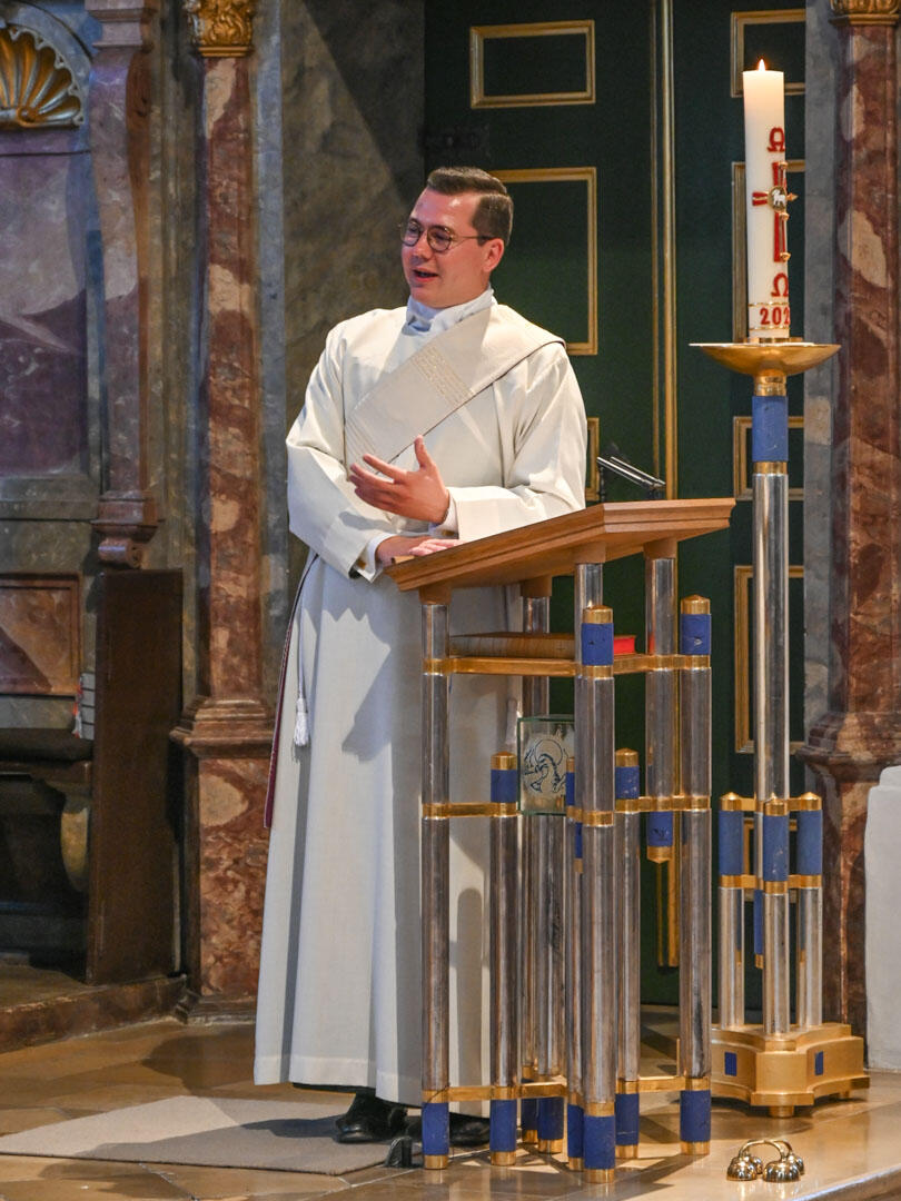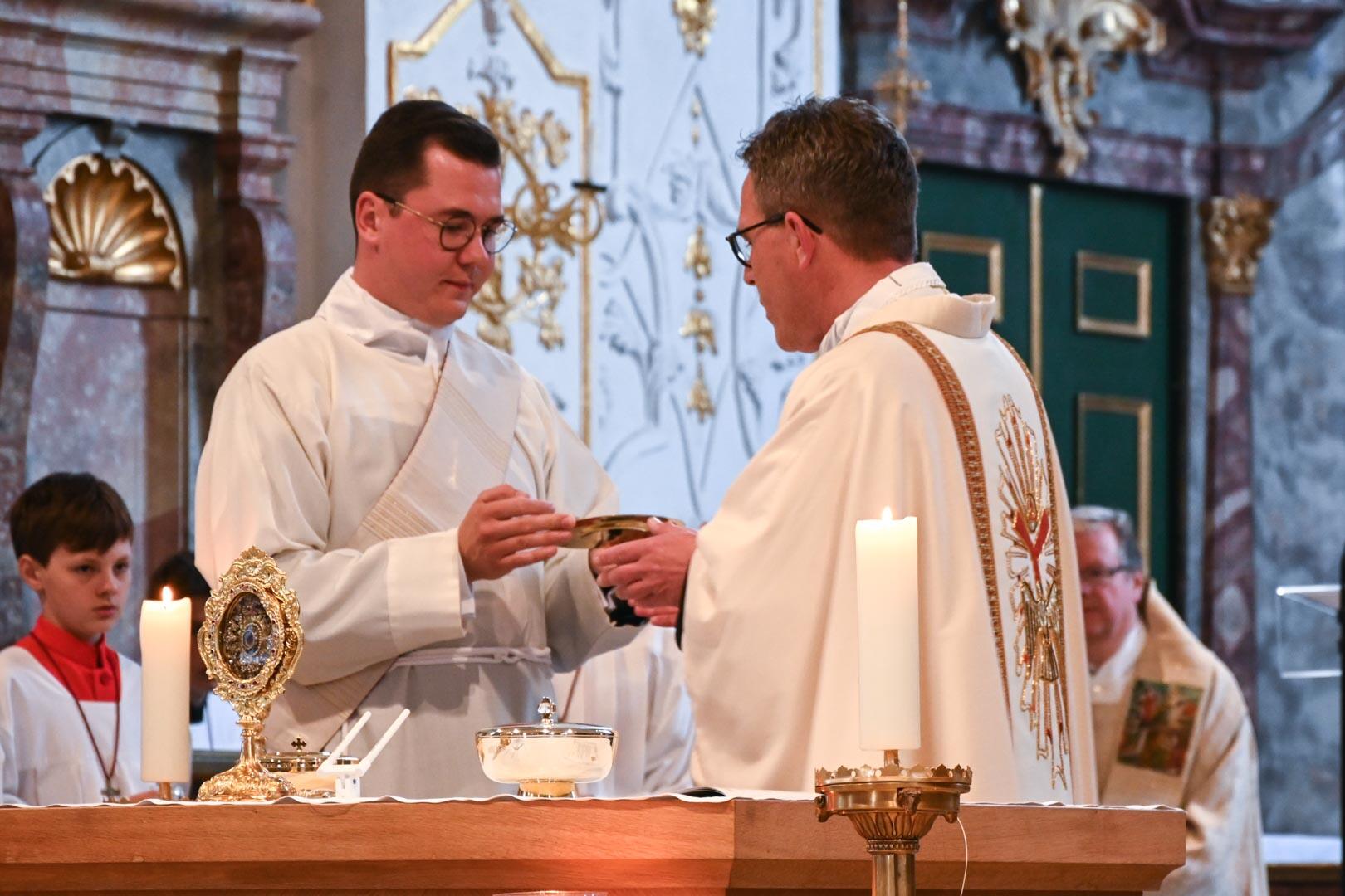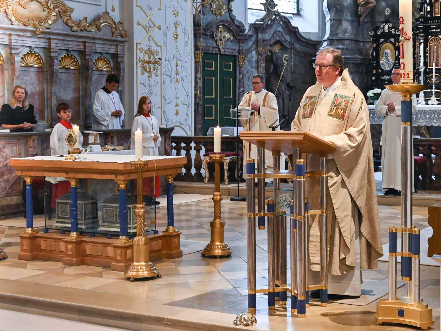 (Christine Jann) Am Sonntagabend, 29. Mai, fand in der Hofkirche die zweite Triduumspredigt statt. Dazu war mit Pfarrer Klaus Bucher ein langjähriger Begleiter und auch Freund von Manuel Reichart aus Breitenthal angereist. Der Dekan von Günzburg stimmte den Diakon in seiner Predigt schon ausführlich darauf ein, was ihn bei der Priesterweihe und als Priester erwartet.
